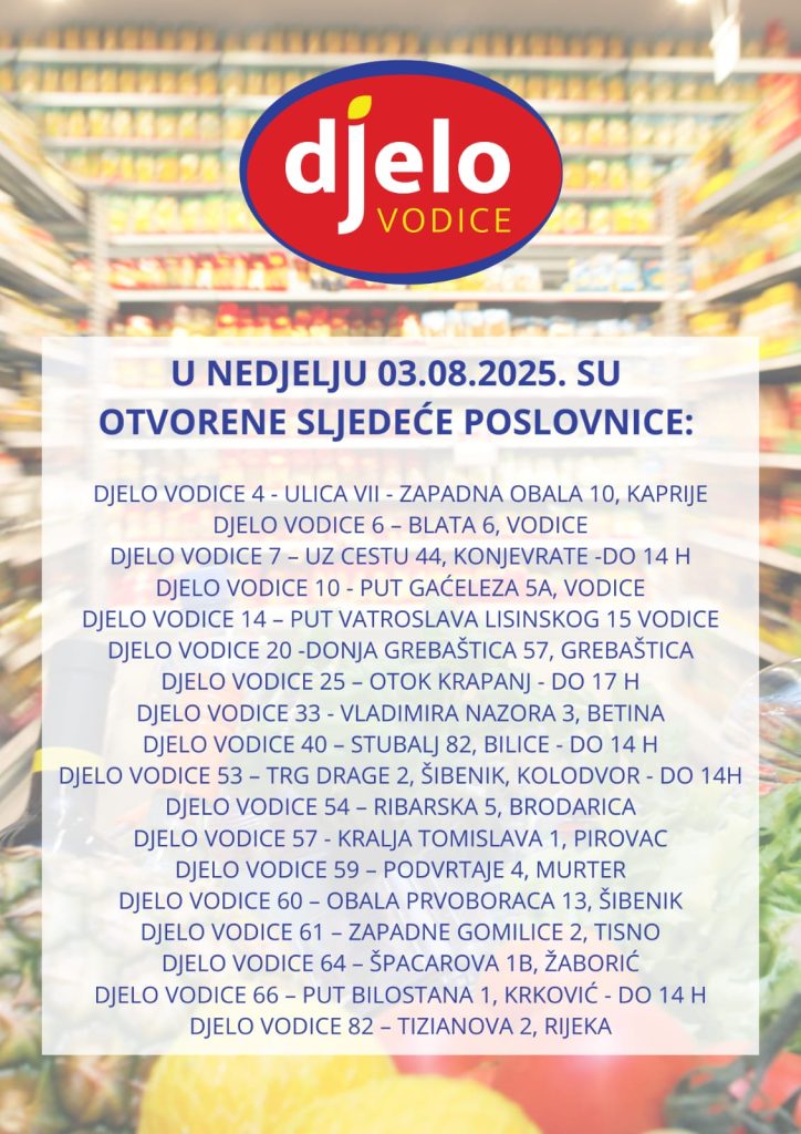 Ove će poslovnice biti otvorene u nedjelju 03.08.2025.